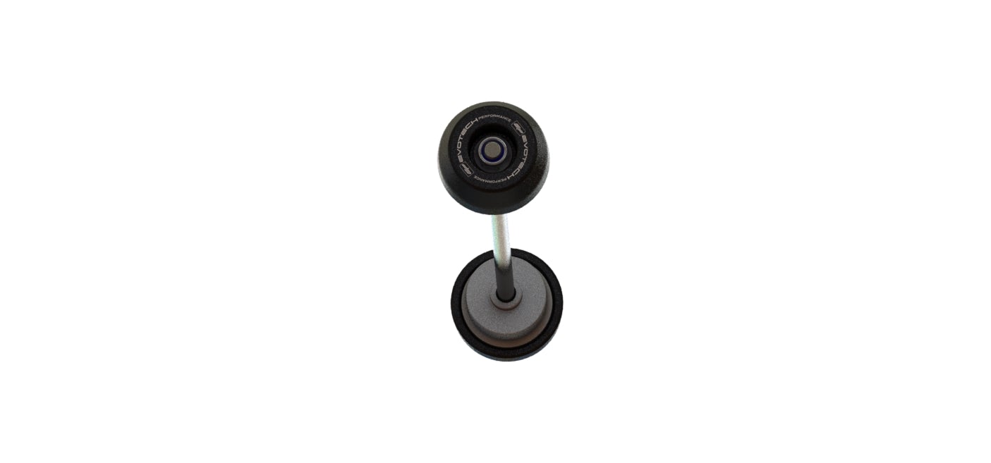 La pièce arrière Evotech Performance est conçue pour être fixée sur le côté transmission, offrant une protection robuste grâce à sa construction en nylon résistant et sa base en aluminium. La concEvotech Performancetion ingénieuse permet à la bobine en nylon de tourner librement sur le noyau en aluminium, ce qui améliore la durabilité tout en réduisant les contraintes sur la roue arrière. De plus, elle est maintenue par une tige en acier inoxydable, garantissant une fixation solide et fiable.